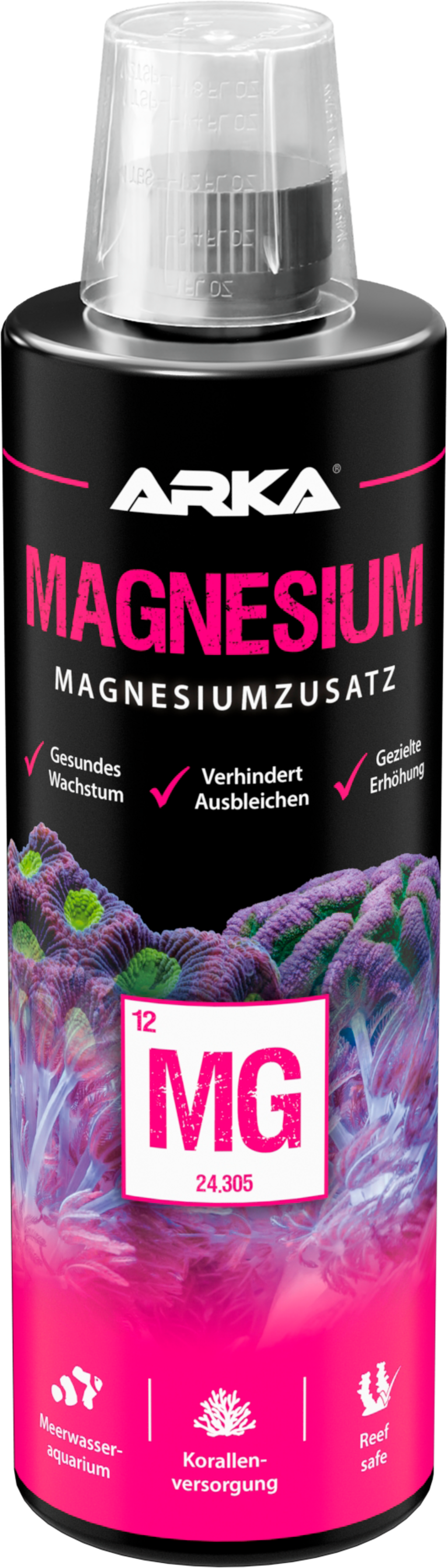 Prísada horčíka so stabilizátorom pH pôsobí proti nedostatku horčíka a stabilizuje hodnotu vápnika a pH. Špeciálne vyvinuté zloženie zabezpečuje zdravý rast koralov a rýchly rast rias Corallinales.