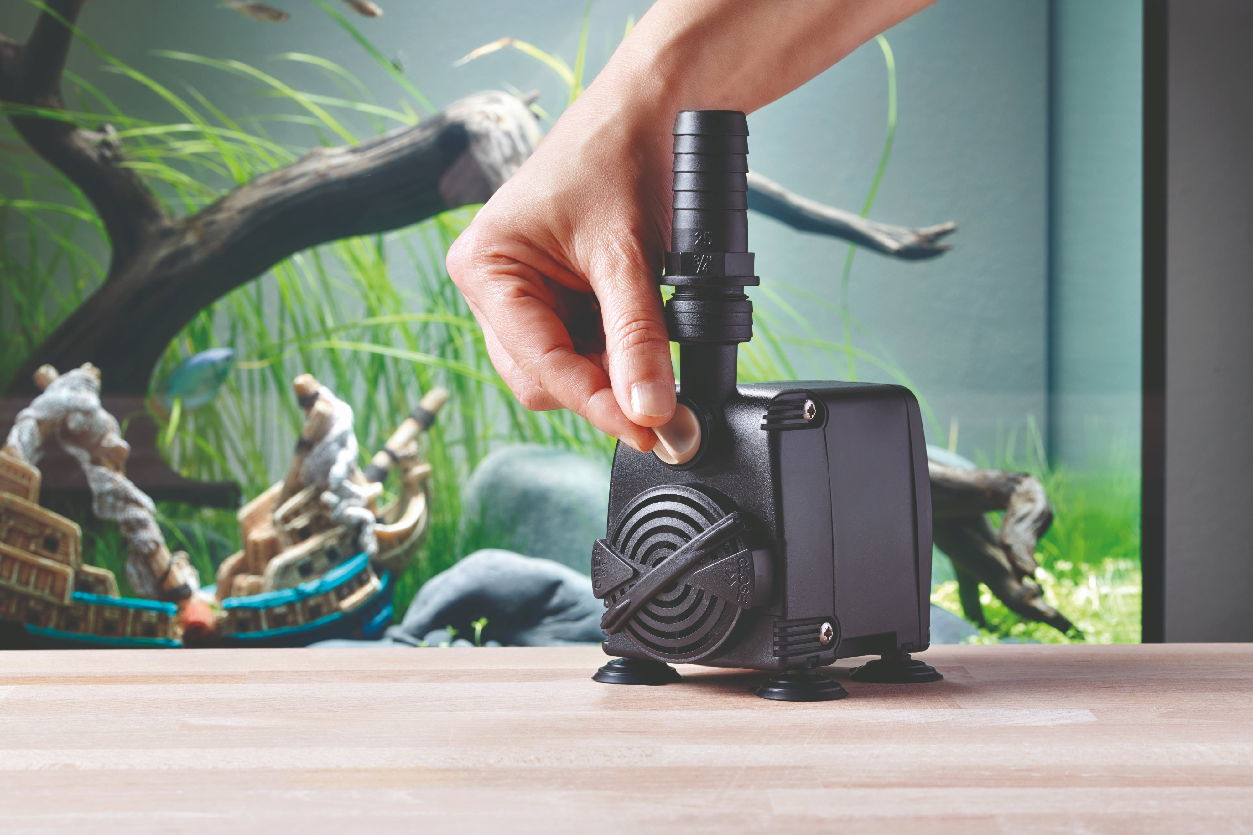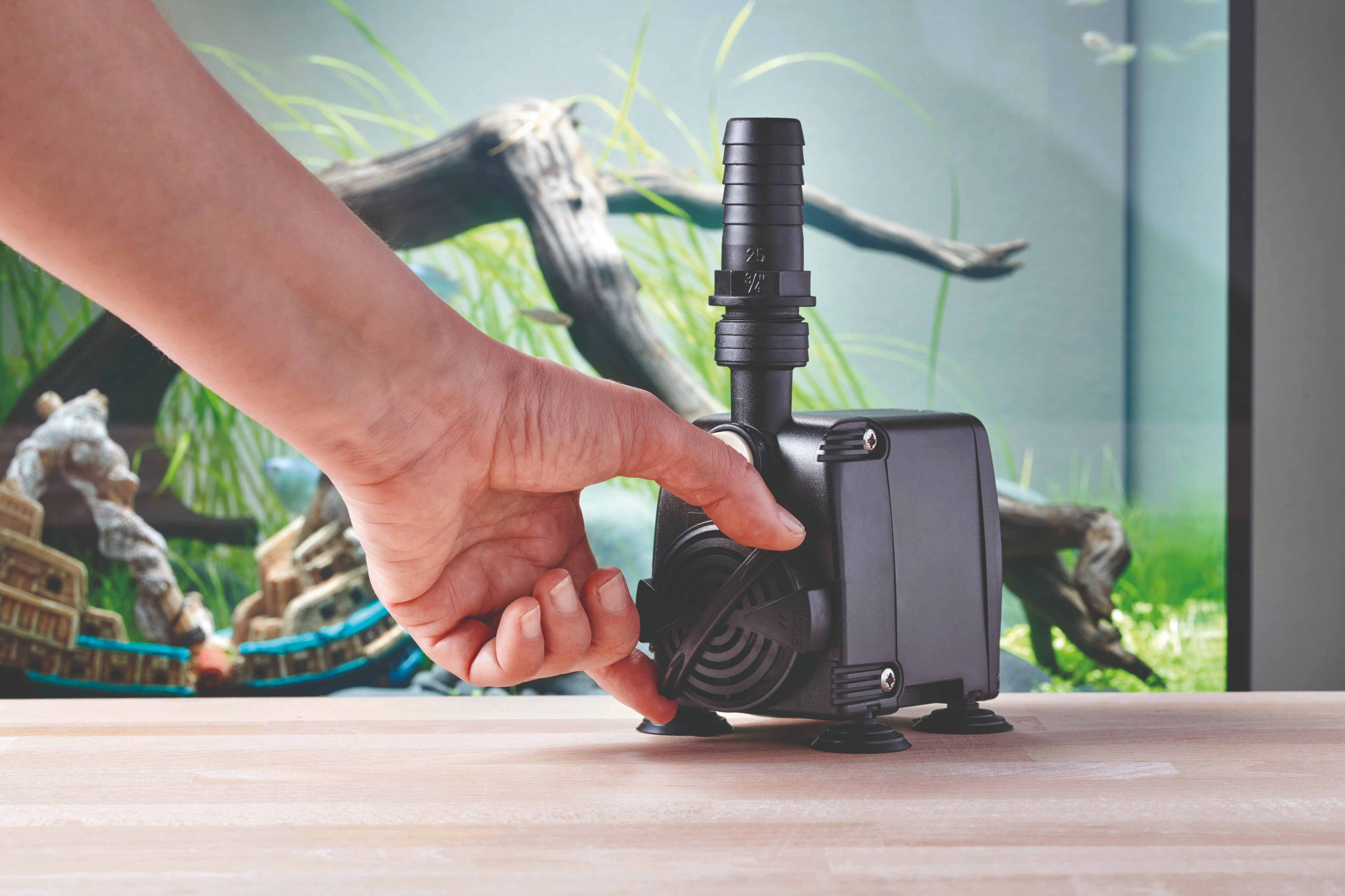 Toto čerpadlo je skutočným silákom a vďaka dokonalej koordinácii motora a pohonnej jednotky je nielen mimoriadne spoľahlivé, ale aj veľmi tiché. Jeho konštrukcia zaisťuje bezpečné umiestnenie v akváriu, zatiaľ čo chránený sací otvor zabraňuje nasávaniu malých obyvateľov akvária, ako sú ryby a krevety.