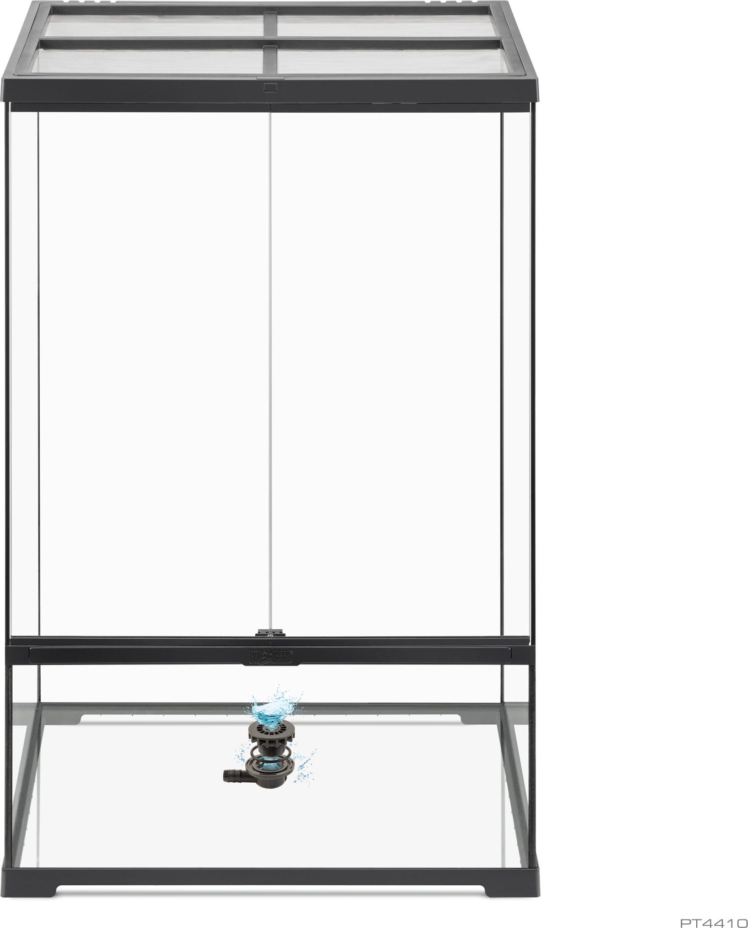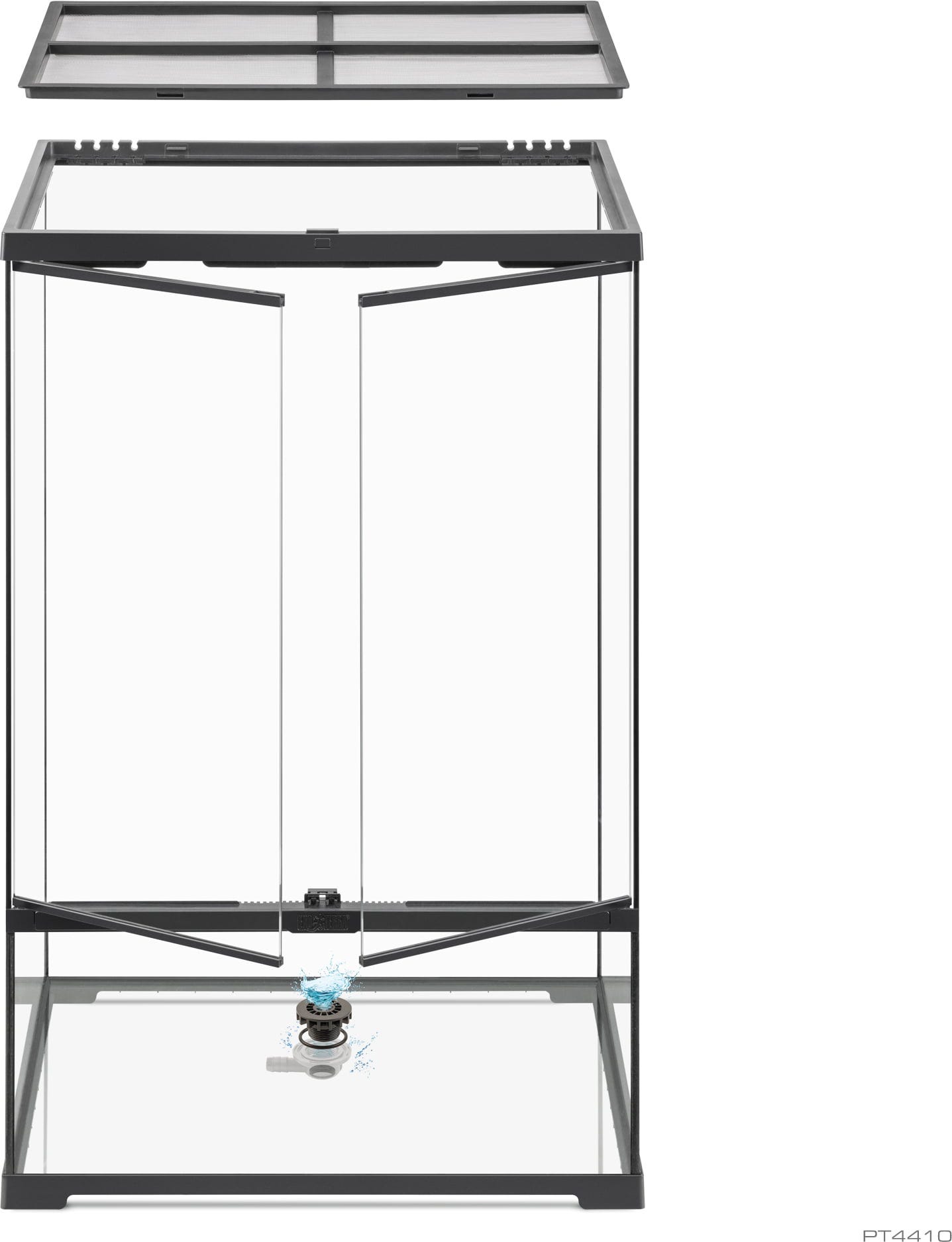 Predné otváracie dvierka sú vybavené bezpečným tlakovým zámkom, ktorý zabraňuje nežiaducemu úniku a stále umožňuje ľahký prístup na kŕmenie. Odnímateľný kryt z vysokokvalitnej sieťoviny z nehrdzavejúcej ocele umožňuje nerušený priechod životne dôležitých UVB lúčov, zatiaľ čo vyvýšený základný rám umožňuje bezpečné upevnenie vyhrievacích rohoží pod terárium.