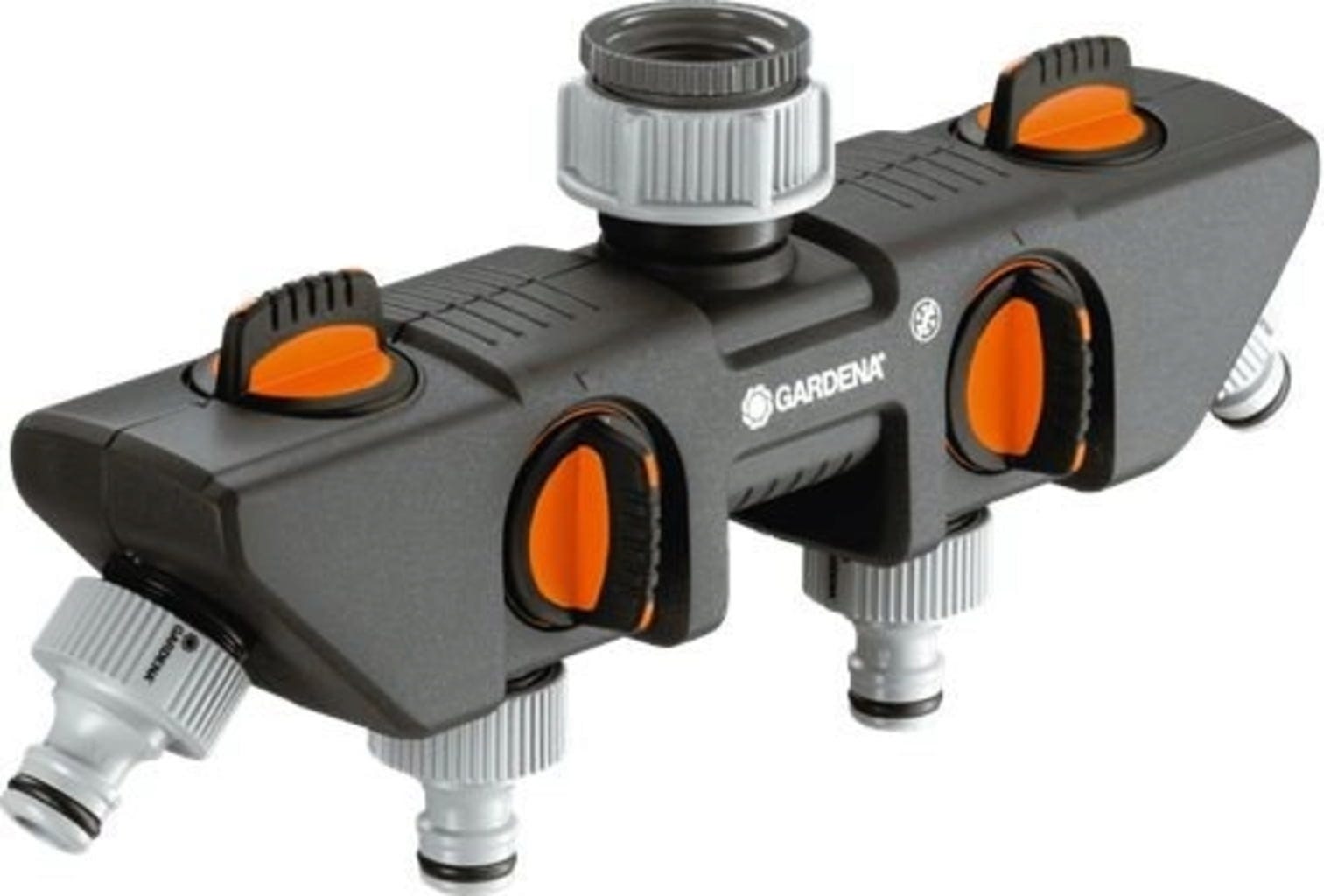 Štvorcestný rozdeľovač od spoločnosti GARDENA sa pripája priamo k vodovodnému kohútiku a umožňuje inštalovať až štyri prípojky súčasne. Alternatívne možno súčasne prevádzkovať až dva zavlažovacie počítače alebo vodné časovače v kombinácii s dvoma ďalšími pripojovacími zariadeniami. Regulátory môžete použiť aj na individuálnu reguláciu alebo vypnutie prietoku vody každej prípojky. Ideálne, ak potrebujete niekoľko spôsobov zavlažovania súčasne.