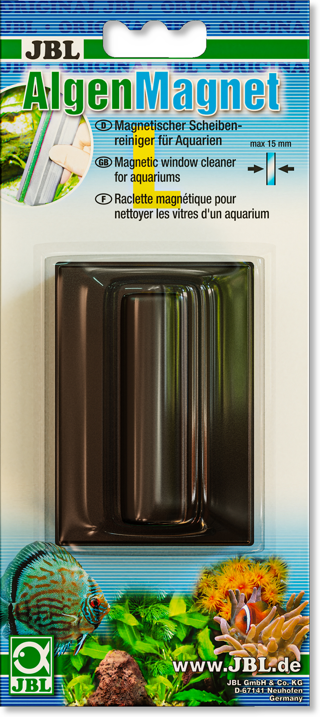 Magnet na riasy JBL má silné magnety pre dobrú priľnavosť a poskytuje rýchle čistenie akvária. Priehlbina na rukoväti umožňuje dobré uchopenie. Magnety sú spojené z vonkajšej a vnútornej strany akvária. Magnet sa ľahkými krúživými pohybmi vedie zvonku cez sklo akvária a čistí tak vnútorné sklo od usadenín.
