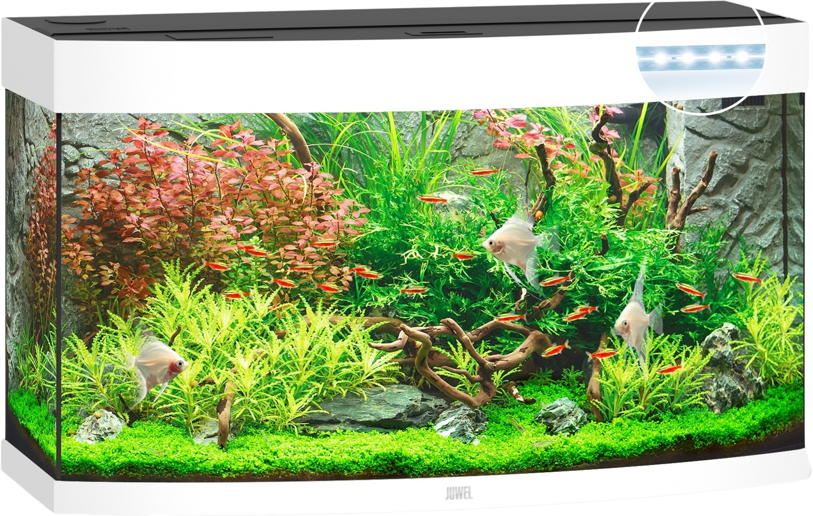 Akvárium Juwel VISION 180 LED kombinované so základnou skrinkou je malé, ale exkluzívne vďaka svojmu elegantnému vzhľadu a dokonale zladeným detailom! So šírkou 92 cm je najmenším akváriom v rade VISION. Vďaka zakrivenému prednému panelu sa veľkolepo prezentuje nielen v malých miestnostiach.