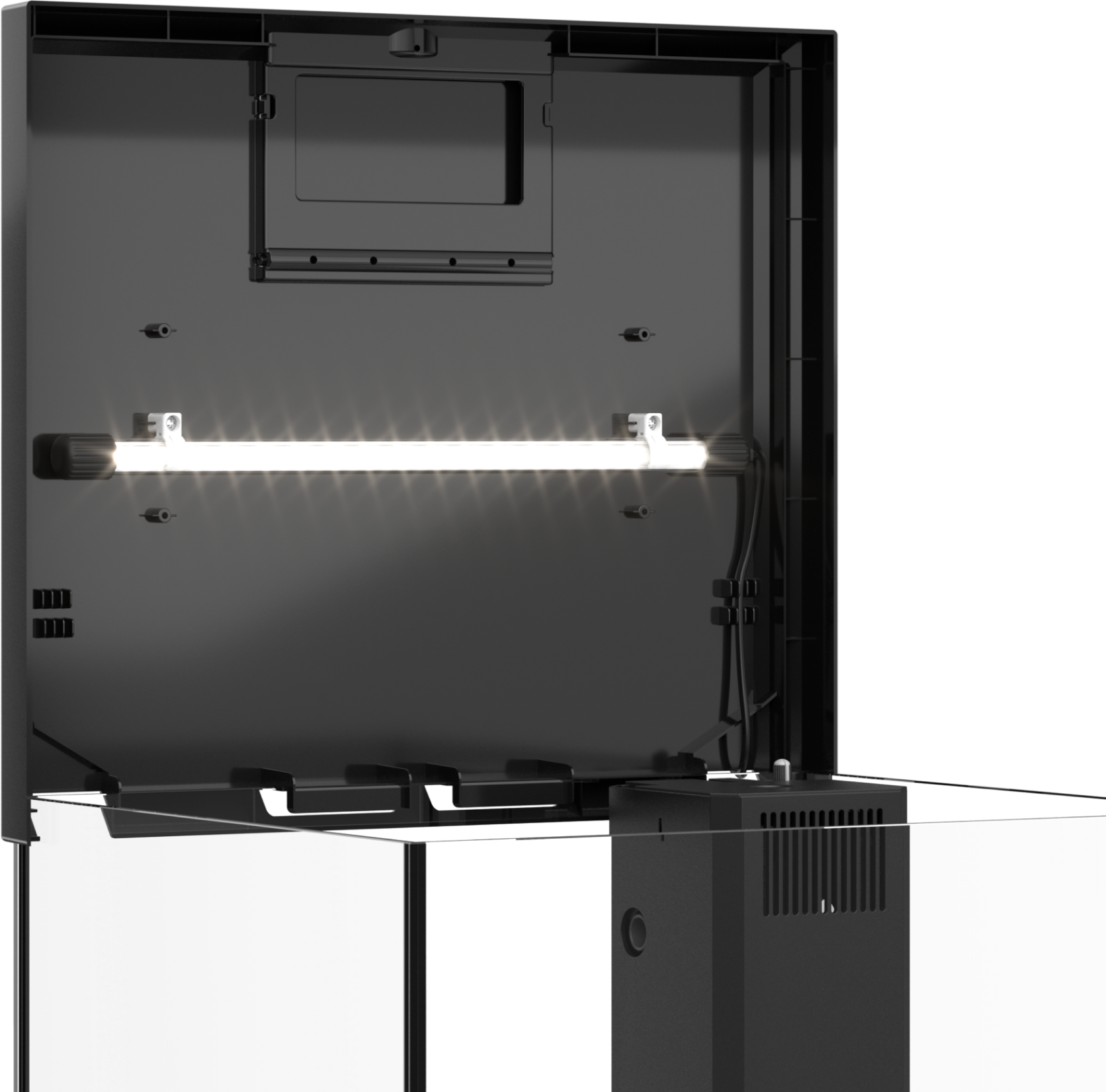 O dokonalú atmosféru sa postará energeticky úsporné svietidlo NovoLux LED 40 Neo, ktoré skvele osvetlí vašu scenériu s príkonom len 7 W a v prípade potreby ho možno dokonca jednoducho rozšíriť o ďalšie moduly. Jedným z dômyselných detailov je kryt, ktorý vedie kondenzát späť do akvária a má praktickú klapku na kŕmenie, ktorá je dokonca kompatibilná s automatickým podávačom Juwel EasyFeed. Pre udržanie krištáľovo čistej vody je súčasťou balenia výkonný filtračný systém BioFlow, ako aj tiché čerpadlo EccoFlow a integrovaný ohrievač AquaHeat.