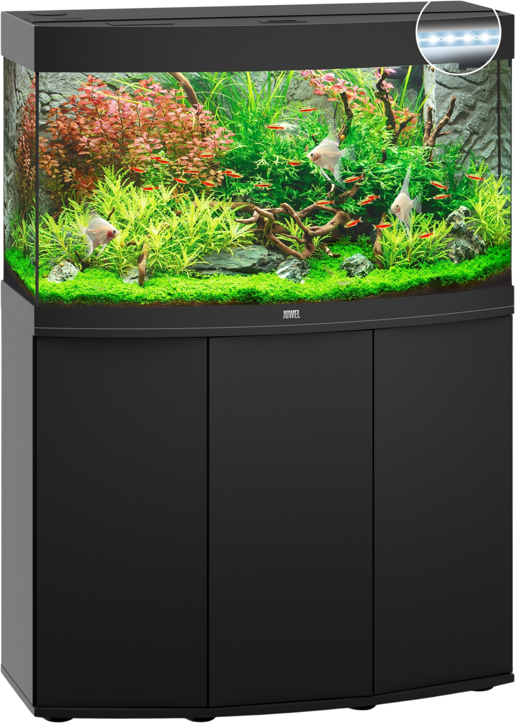Akvárium Juwel VISION 180 LED kombinované so základnou skrinkou je malé, ale exkluzívne vďaka svojmu elegantnému vzhľadu a dokonale zladeným detailom! So šírkou 92 cm je najmenším akváriom v rade VISION. Vďaka zakrivenému prednému panelu sa veľkolepo prezentuje nielen v malých miestnostiach.