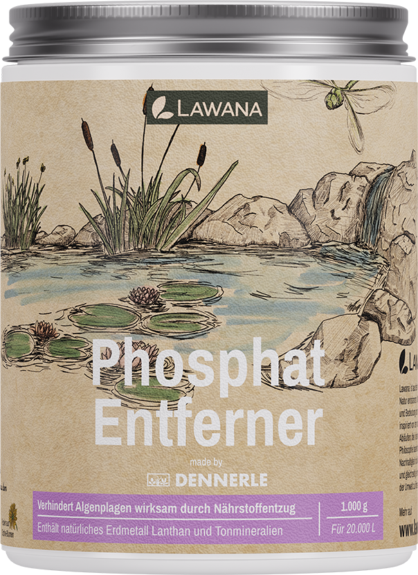 Odstraňovač fosfátov Lawana odstraňuje prebytočné živiny z jazierka pomocou prírodných zemitých kovov a ílových minerálov. Obsiahnutý lantán trvalo viaže fosforečnany vo voľnej vode aj priamo na dne, takže sa nemôžu znovu rozpustiť.