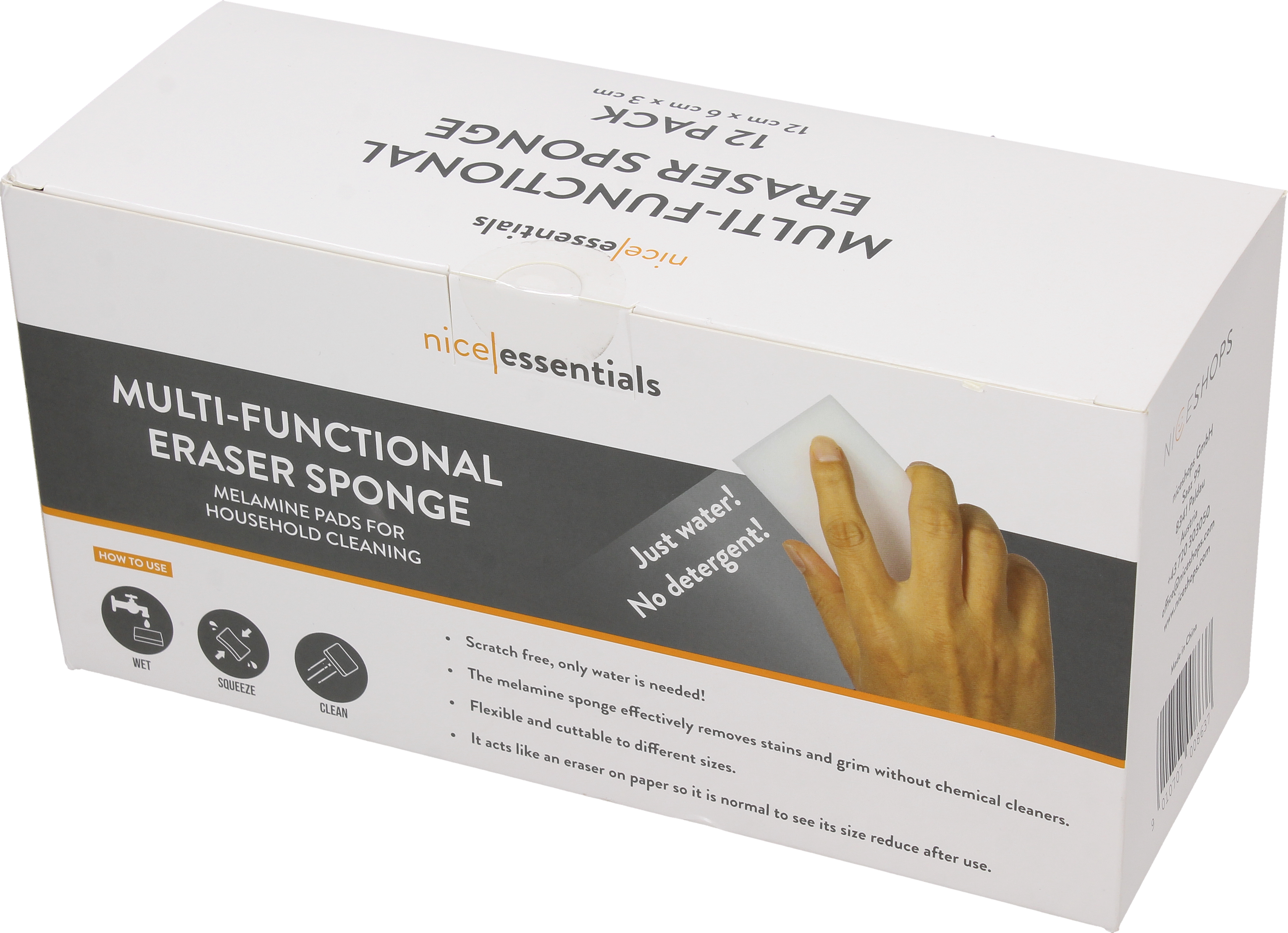 Škvrny, sivá hmla alebo lepkavé zvyšky? S melamínovými hubkami na nečistoty od nice essentials všetky nečistoty zmiznú ako mávnutím čarovného prútika. Stačí mierne navlhčiť, pretrieť postihnuté miesto a sledovať, ako sa špina rozpúšťa - bez akýchkoľvek chemických čistiacich prostriedkov!