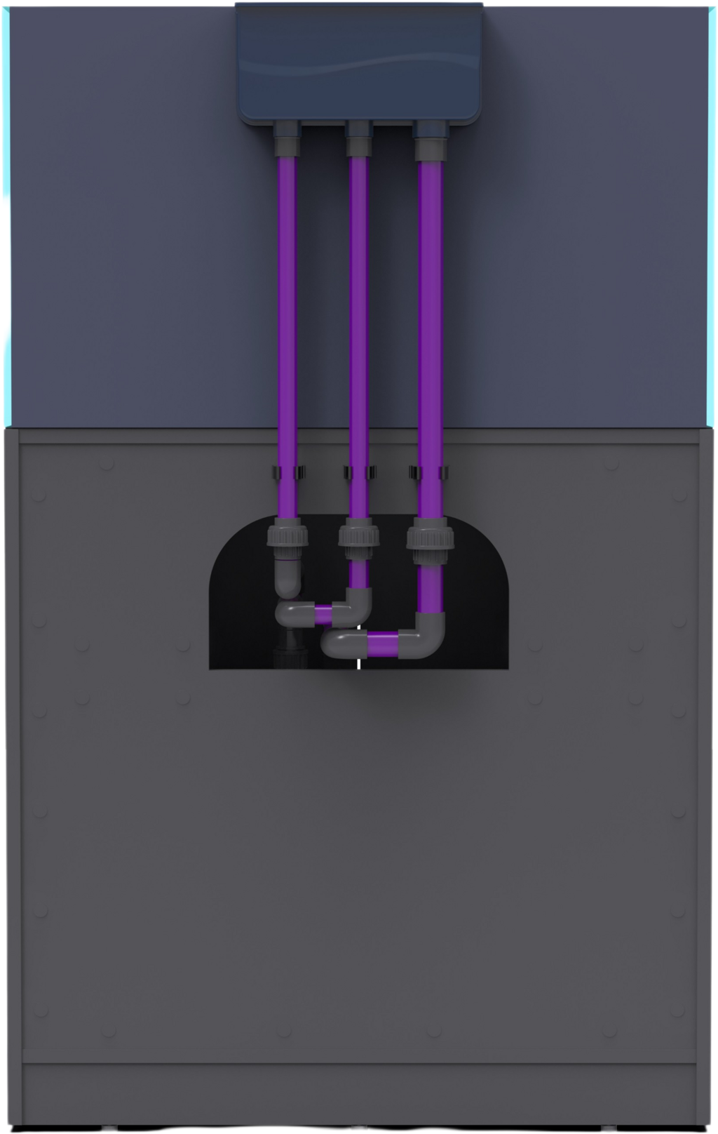 - Morské akvárium s externým odtokovým žľabom a 3 stranami z ultra-čistého skla.