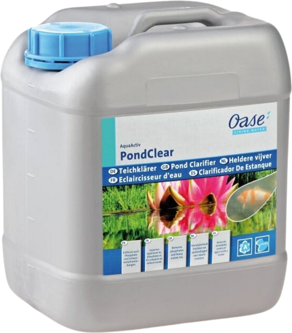 S prípravkom AquaActiv PondClear od spoločnosti Oase si môžete v okamihu zabezpečiť nádherne čistú vodu vo vašom jazierku! Vďaka inovatívnemu zloženiu odstraňuje najmenšie, nefiltrovateľné nečistoty, ťažké kovy a fosfáty.