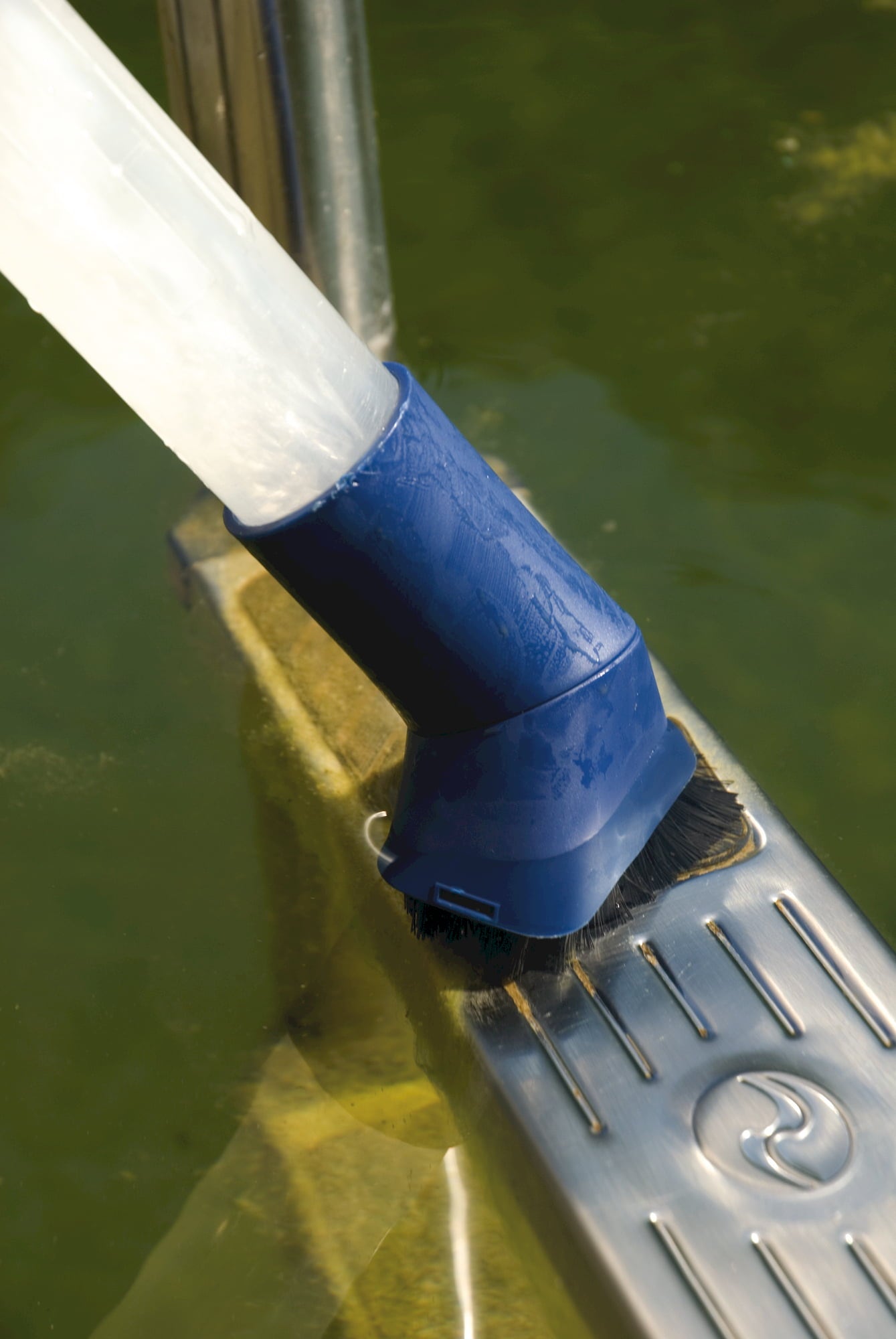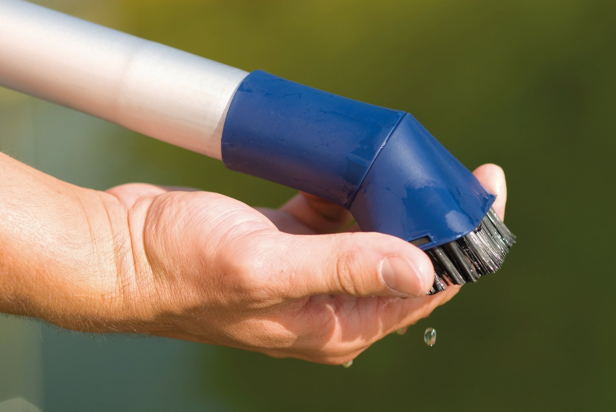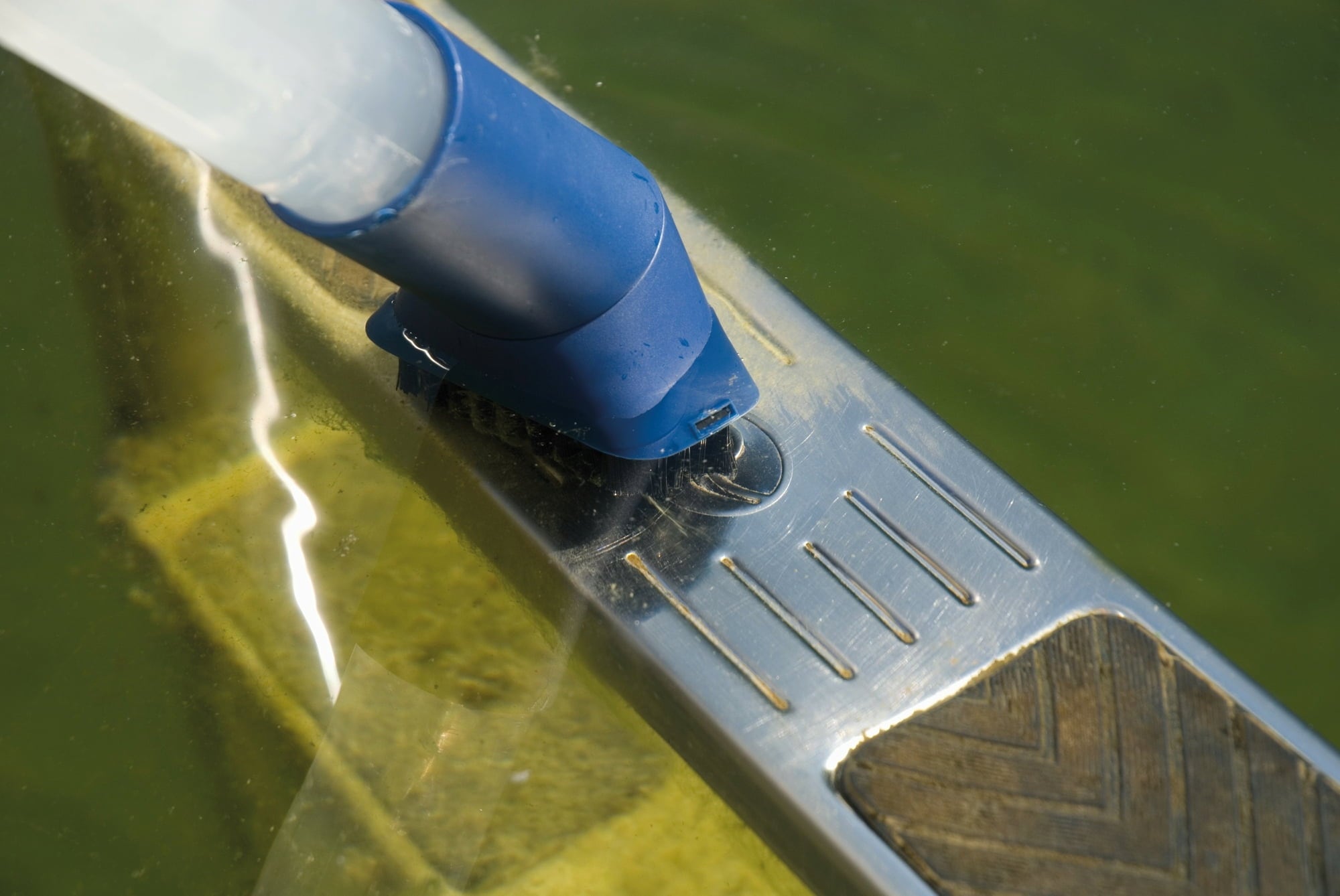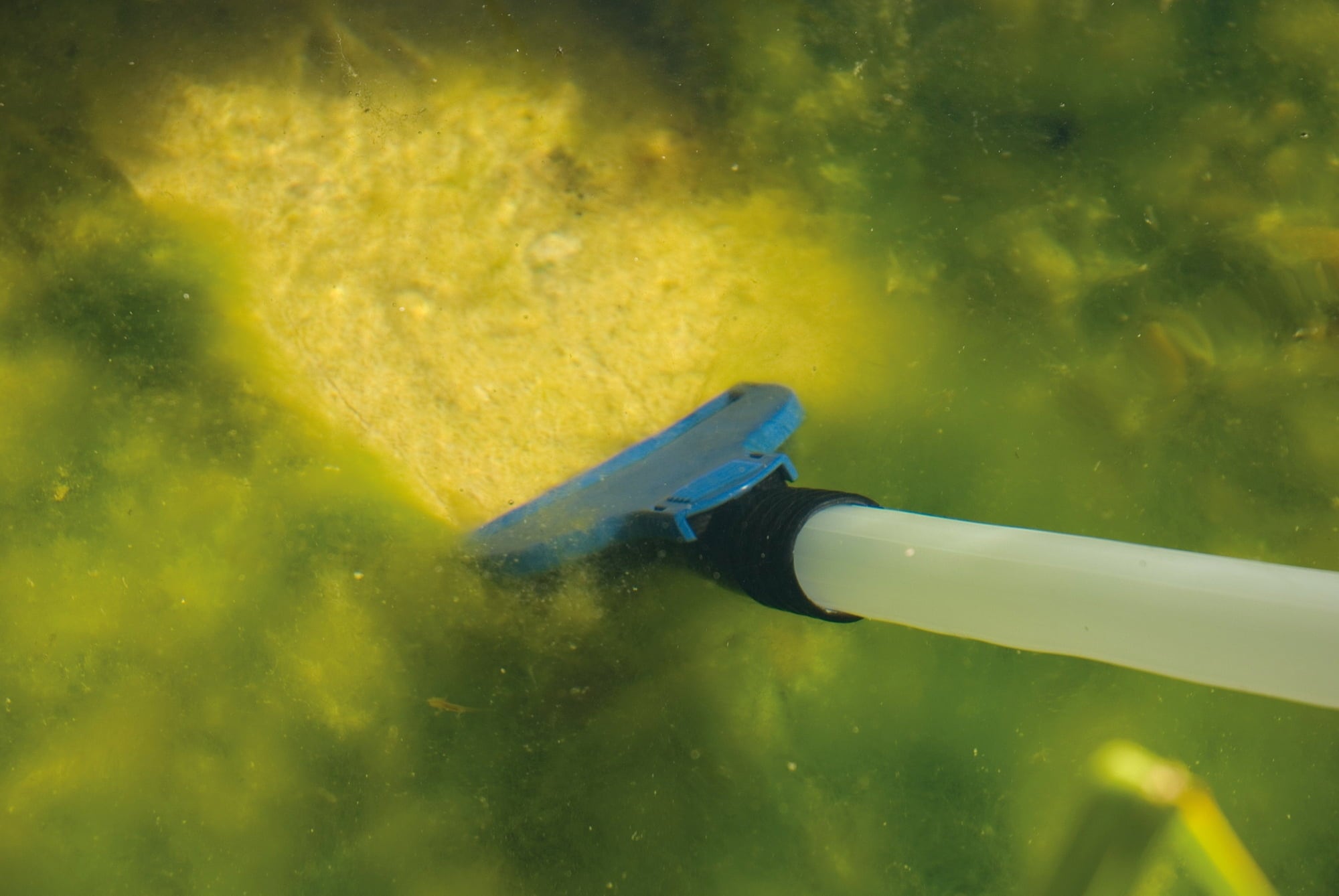 Dvojkomorový systém funguje prostredníctvom dvoch valcov rovnakej veľkosti: pracujú súčasne s plnením a vyprázdňovaním s mimoriadne výkonným vysávaním. Ak chcete vyčistenú vodu vrátiť do záhradného jazierka, vrecko na zachytávanie nečistôt zadrží hrubšie častice (> 1 mm). Sada nadstavcov obsahuje trysku na mokré vysávanie, univerzálnu trysku, špeciálnu trysku na riasy, plošnú trysku a kefovú trysku.