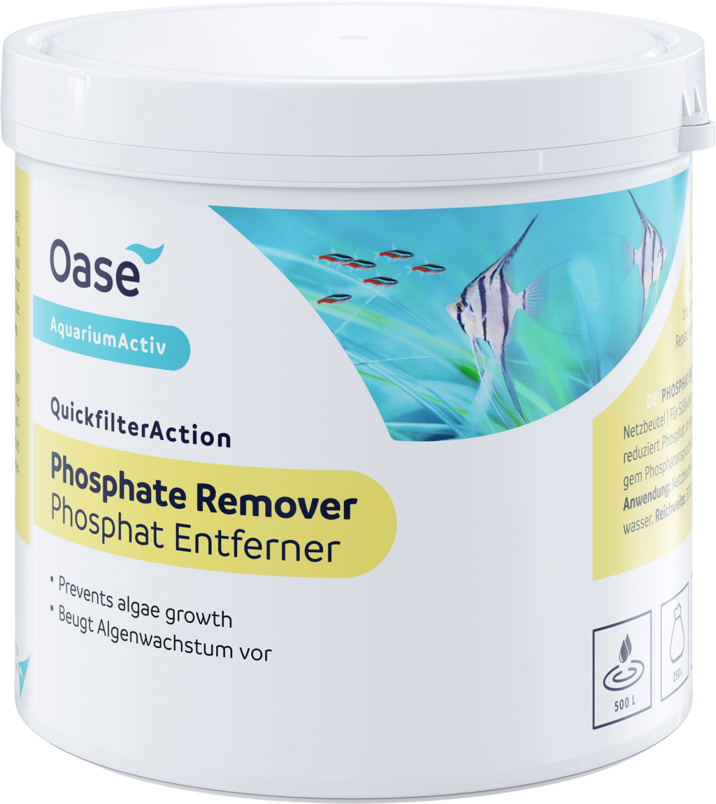 Odstraňovač fosfátov QuickfilterAction od spoločnosti OASE účinkuje rýchlo: 100 g prášku viaže 2,4 g fosfátov v najkratšom čase! Pôsobí bez zakalenia alebo zafarbenia vody a neobsahuje žiadne ťažké kovy.