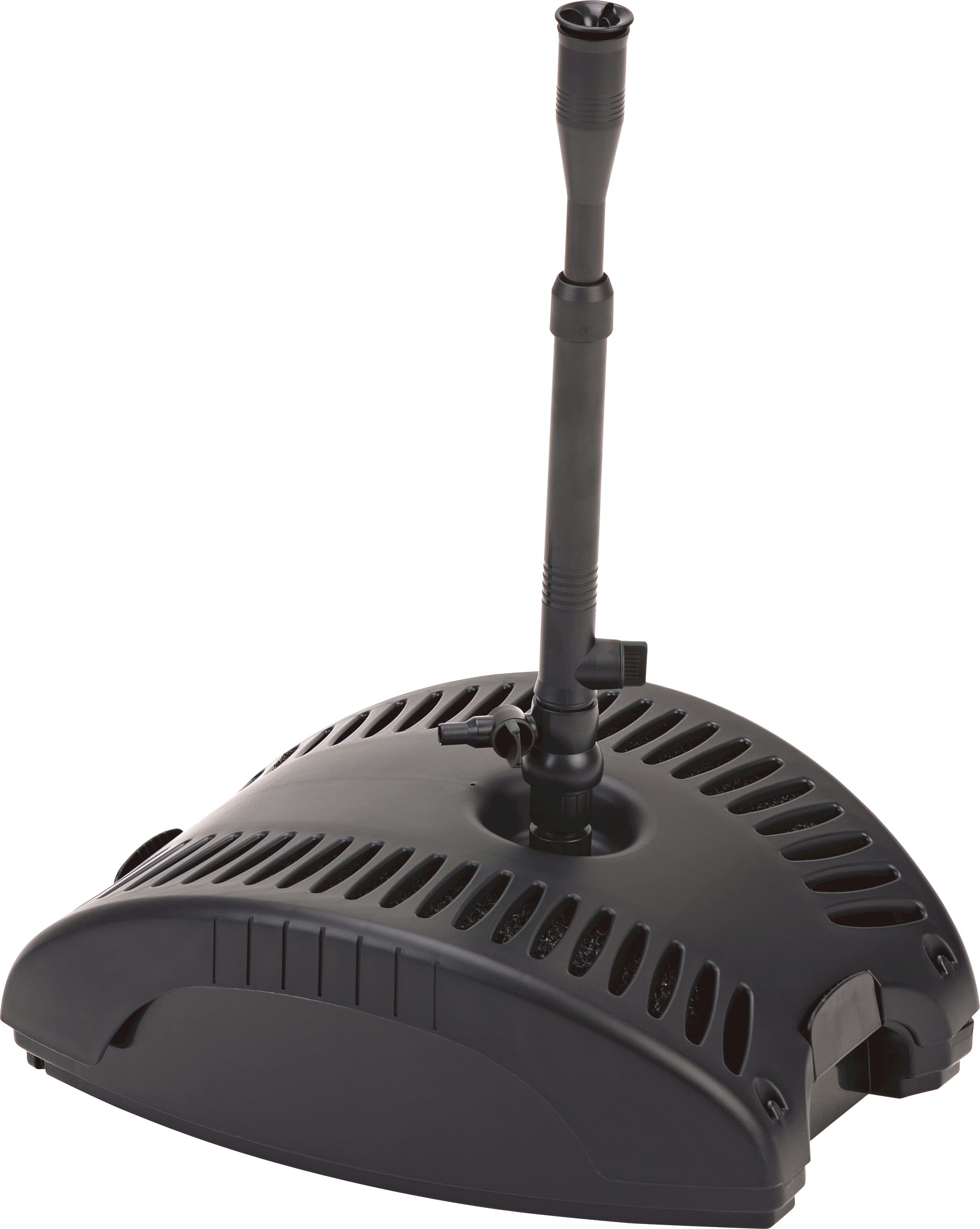 Vo vnútri krytu sa o dôkladné čistenie a biologickú rovnováhu starajú rôzne biomechanické filtračné stupne - pozostávajúce z filtračných špongií, bio-povrchových prvkov a vysokokvalitnej filtračnej horniny Bio-Pur. Kým sa voda čistí, integrované čerpadlo ju pomocou otočného teleskopického nadstavca dopravuje späť na hladinu, kde sa opäť dostáva do jazierka ako dekoratívny vodný prvok so 4 rôznymi vzormi vody (sopka, trysky, zvon a pohár). Tento proces nielen skvele vyzerá, ale aj obohacuje vodu o cenný kyslík.