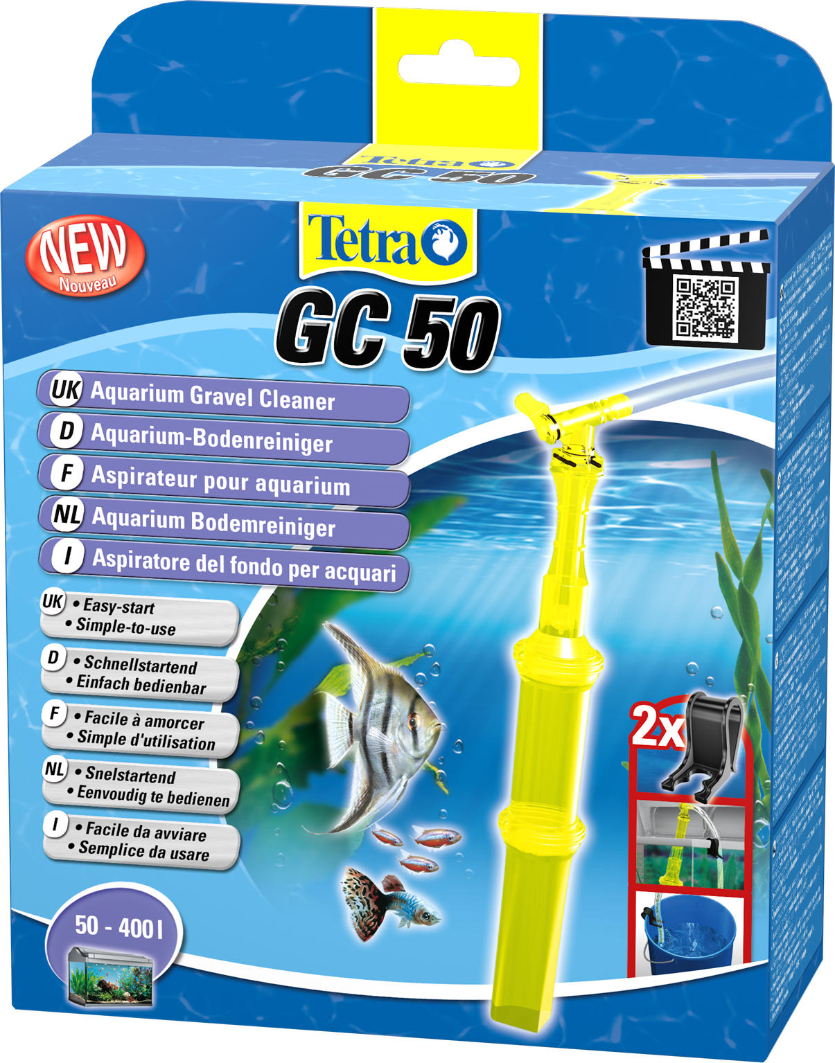 Pohodlný a ľahko použiteľný odkaľovač na čistenie dna akvárií v troch rôznych veľkostiach.
