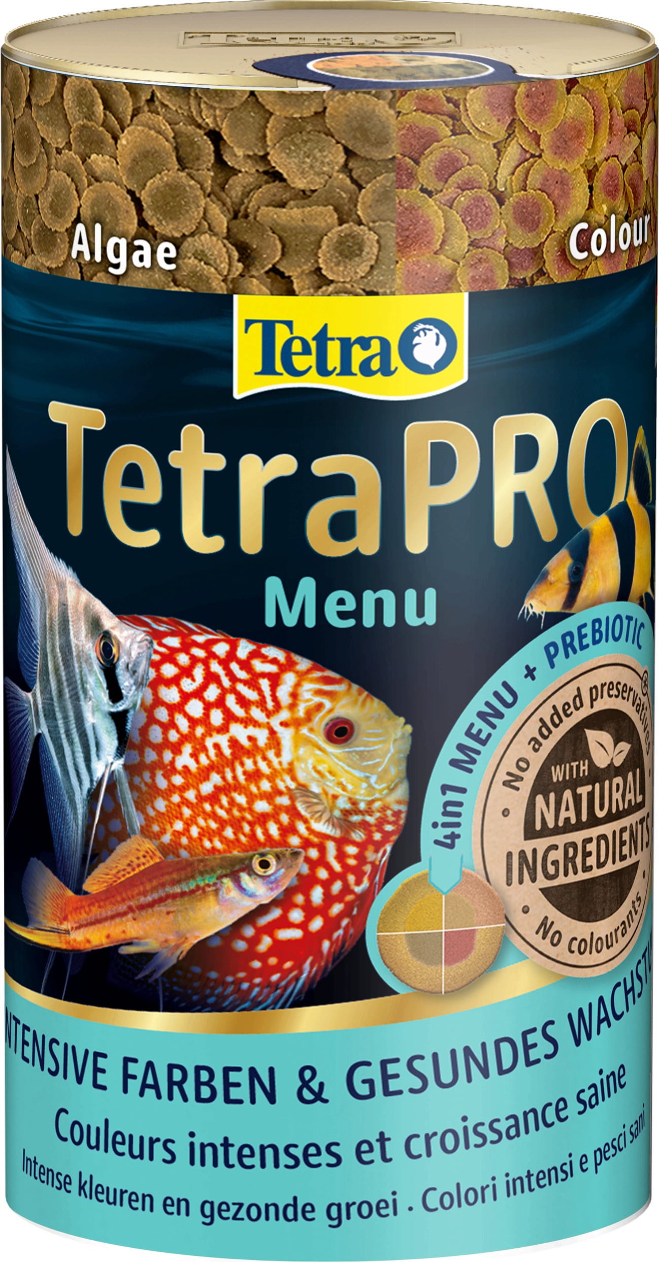 Pro Menu je prémiové krmivo pozostávajúce zo 4 rôznych druhov lupienkov v jednom balení pre všetky okrasné ryby v sladkovodných akváriách.