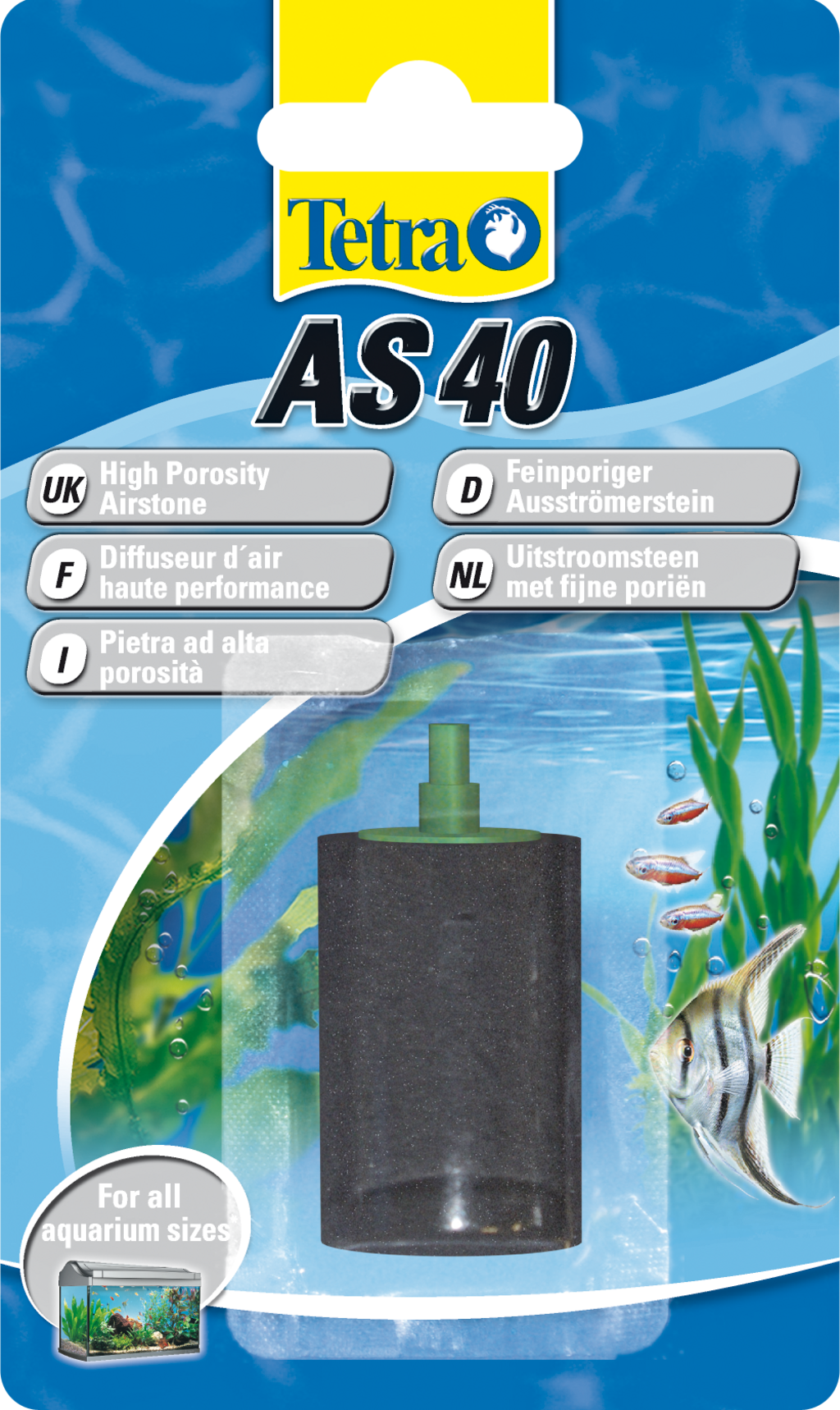 Vzduchový kameň Tetra AS sa pripojí k hadici vzduchového čerpadla Tetra AH 50-400 a vloží sa do akvária.